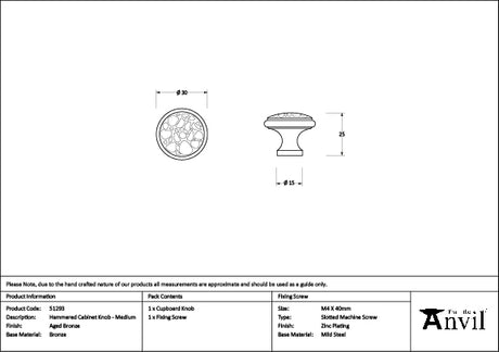 - From The Anvil - From The Anvil - Aged Bronze Hammered Cabinet Knob - Medium Sale price £21.02 Inc VATRegular price Was- £23.35Unit price /Unavailable£17.52 Ex VAT