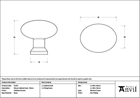 - From The Anvil - From The Anvil - Polished Chrome Moore Cabinet Knob - 38mm Sale price £29.71 Inc VATRegular price Was- £33.01Unit price /Unavailable£24.76 Ex VAT