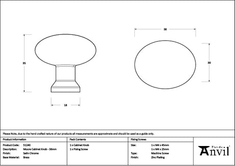 - From The Anvil - From The Anvil - Satin Chrome Moore Cabinet Knob - 38mm Sale price £30.95 Inc VATRegular price Was- £34.39Unit price /Unavailable£25.79 Ex VAT