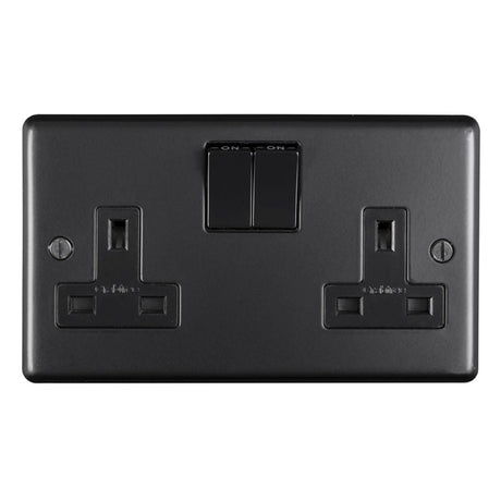 Eurolite Stainless Steel 2 Gang Socket - Matt Black (With Black Trim)