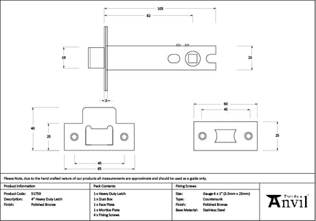 From The Anvil - Polished Bronze 4" Heavy Duty Latch
