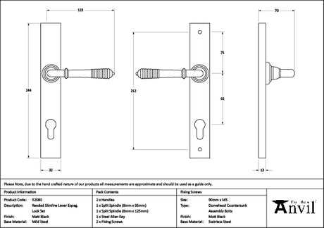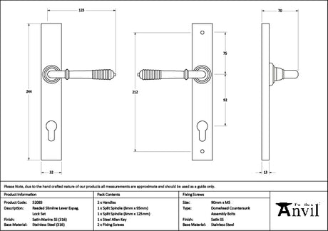 From The Anvil - Satin Marine SS (316) Reeded Slimline Lever Espag. Lock Set